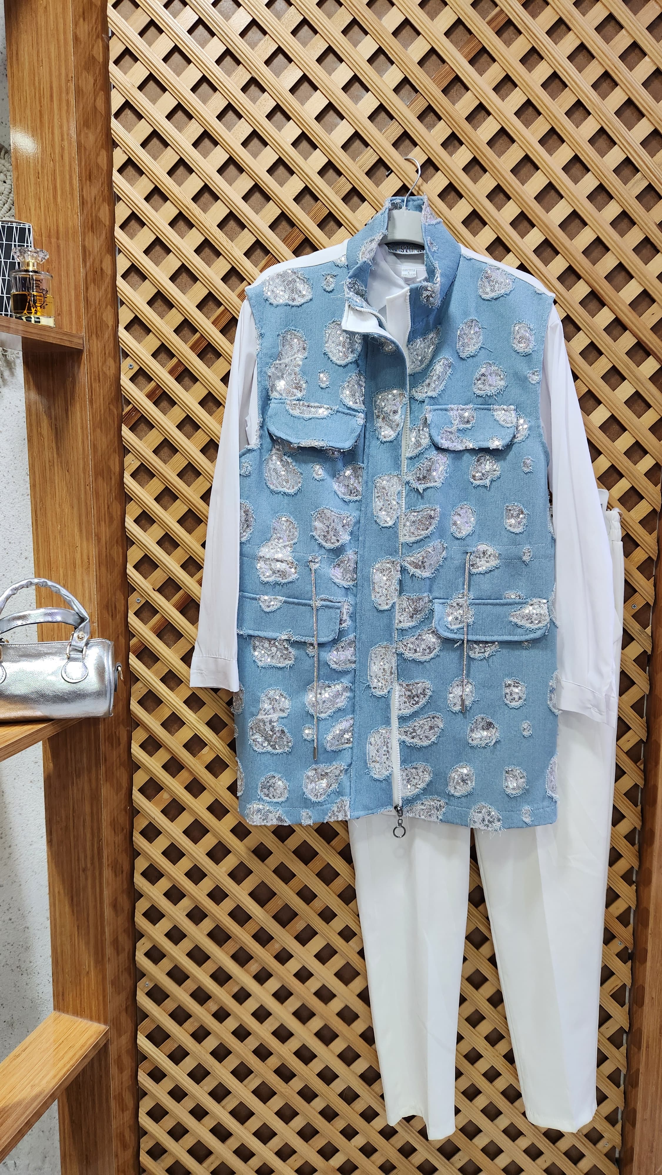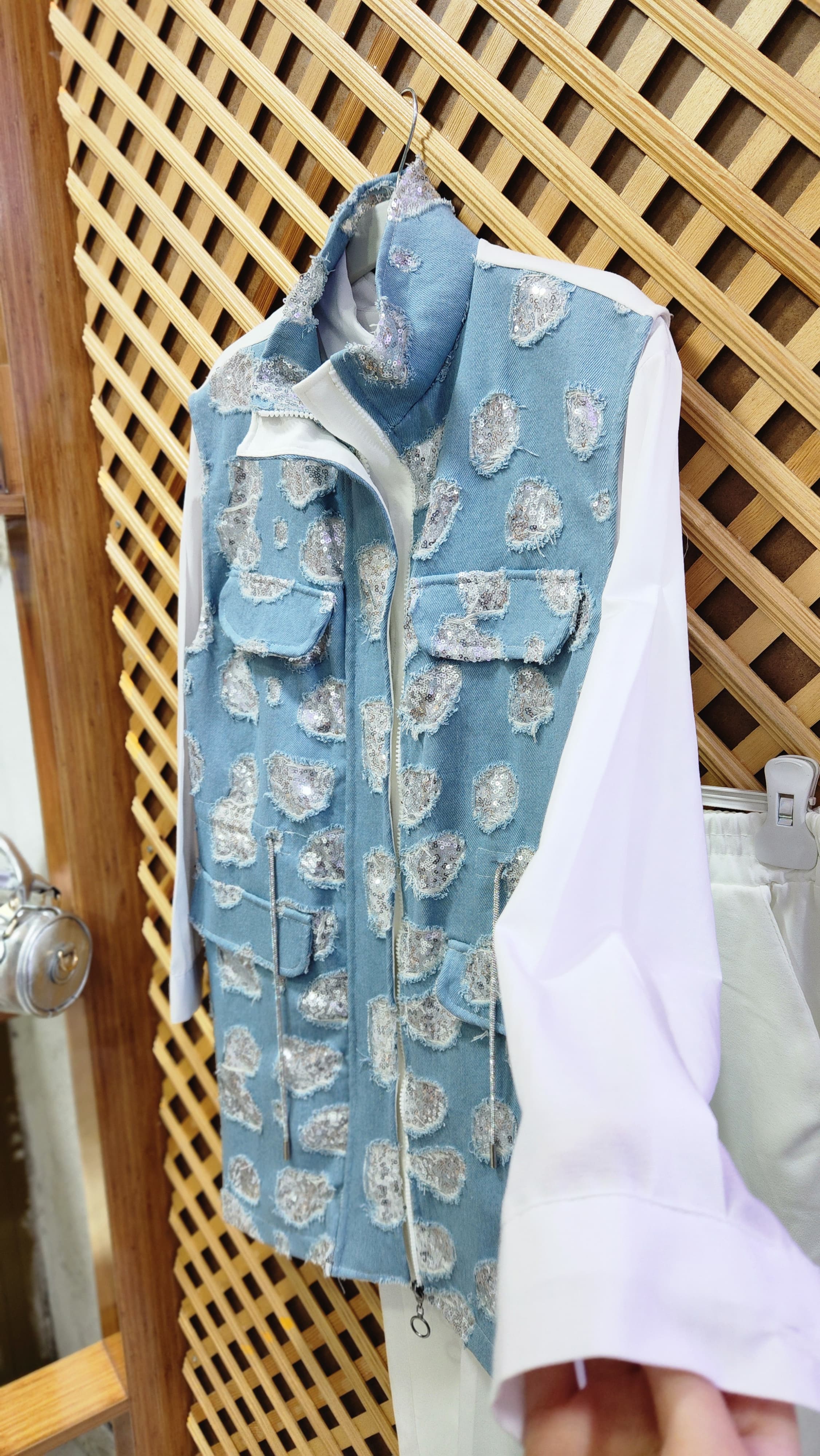 Pul işlemeli kot yelek